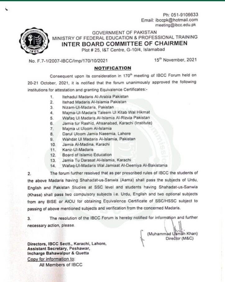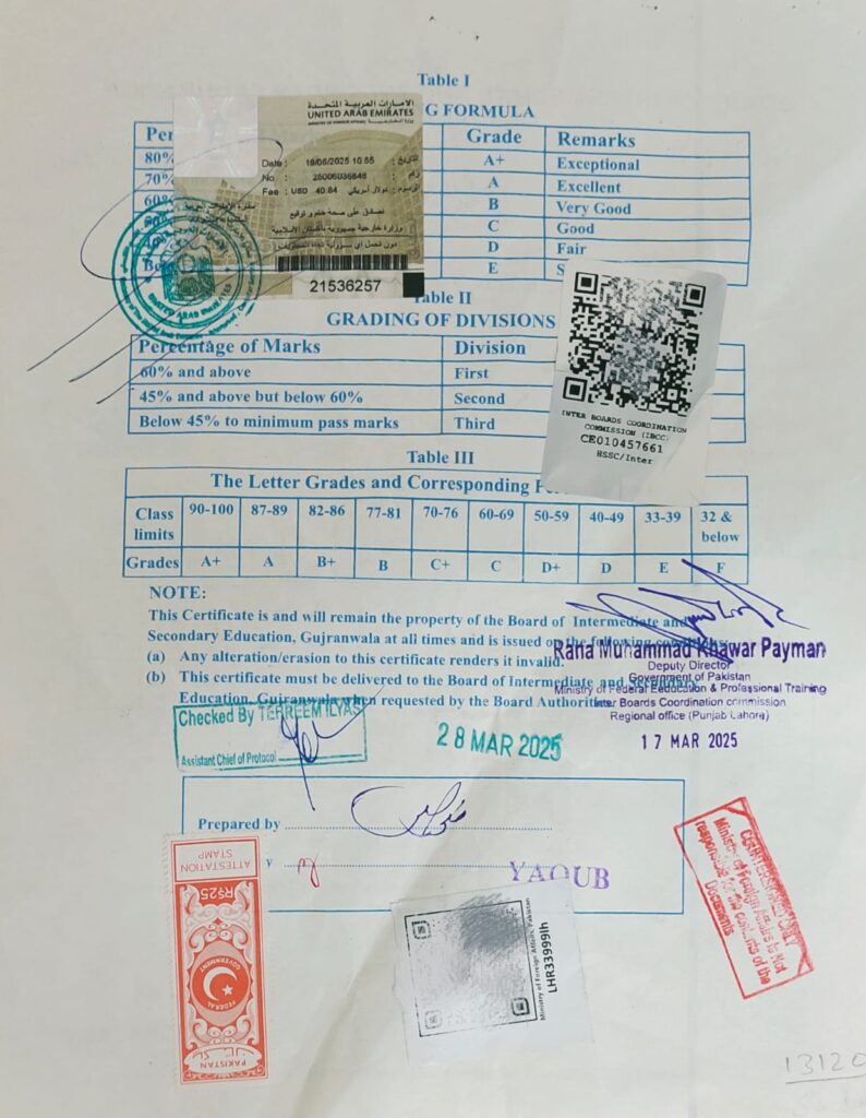 Applicants must submit original certificates, transcripts, a school leaving certificate, and a passpoSubj of their passports like Urdu, English, Math, and Islamiat, which are mandatory for equivalence.