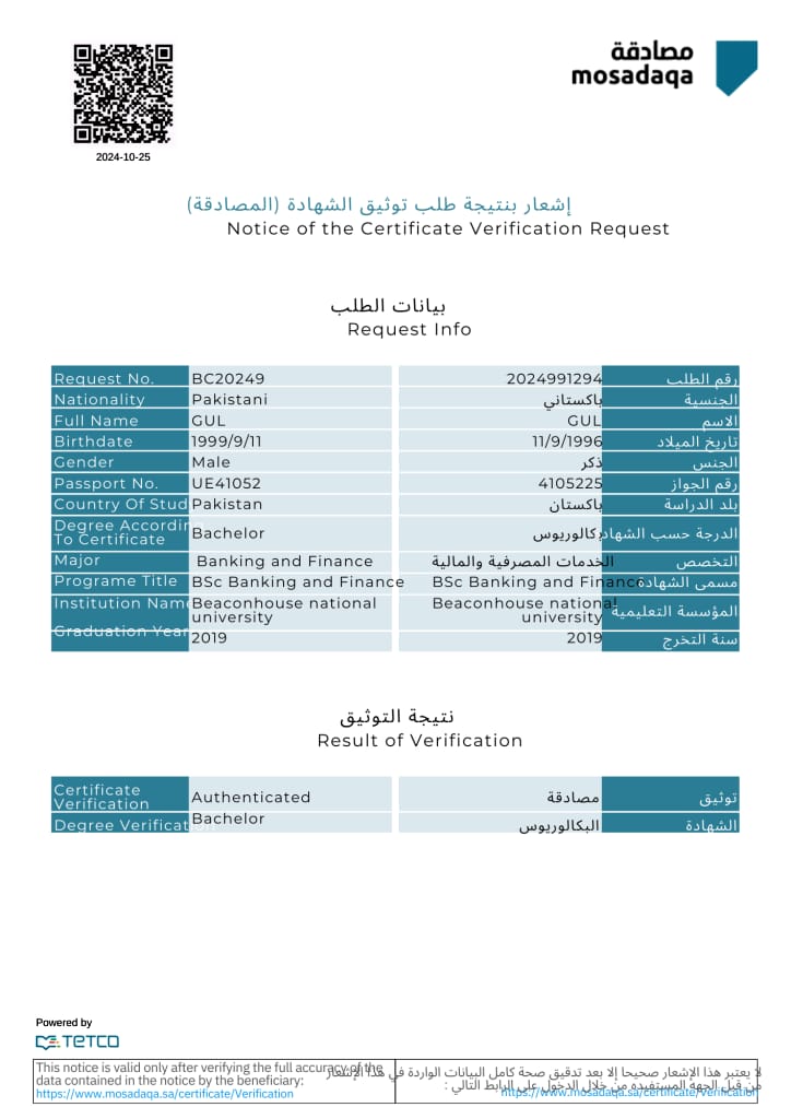 Your educational documents cannot skip steps. Before they even reach Mosadqa, your original degree must be duly attested by both the HEC (Higher Education Commission) and the Ministry of Foreign Affairs (MOFA) Pakistan.